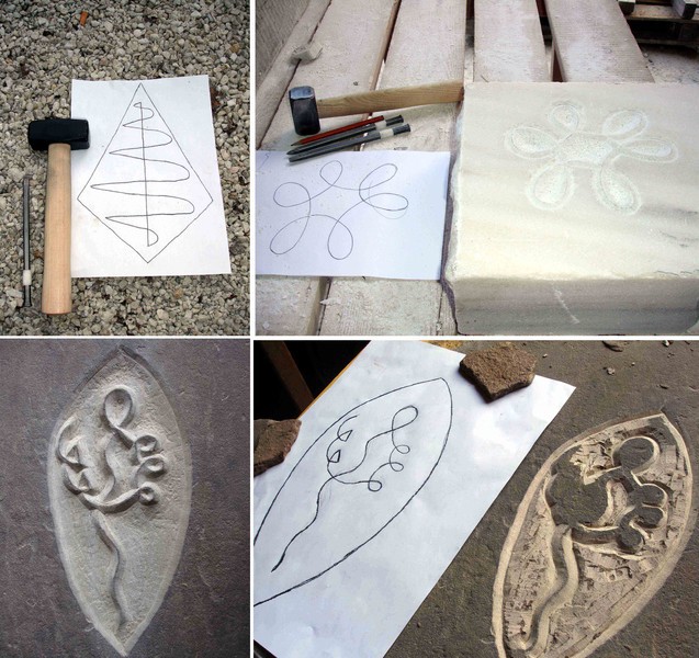 Meißeln von Kosmogrammen in Stein zur Harmonisierung von Haus und Garten oder für Ihre „Meilensteine“ wie Taufe, Hochzeit, Geburtstag etc.